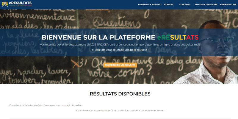 Accessible à l’adresse https://eresultats.bj/, la plateforme centralise les résultats des examens (Cep, Bepc, Bac), des concours ainsi que les épreuves et leurs corrigé-types.