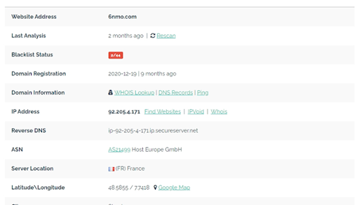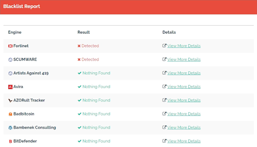 A l’aide de la plateforme Url Void spécialisée en analyse de réputation de site, une recherche sur le site d’annonce de promesse de don au nom du FMI, indique qu’il est classé sur la liste noire.