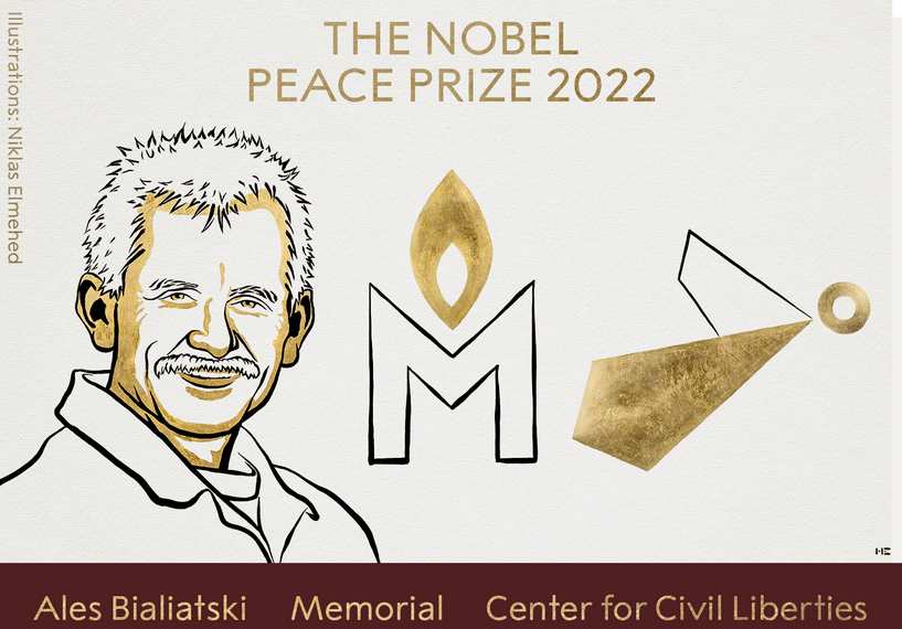 The Norwegian Nobel Committee has decided to award the 2022 #NobelPeacePrize to human rights advocate Ales Bialiatski from Belarus, the Russian human rights organisation Memorial and the Ukrainian human rights organisation Center for Civil Liberties. #NobelPrize pic.twitter.com/9YBdkJpDLU