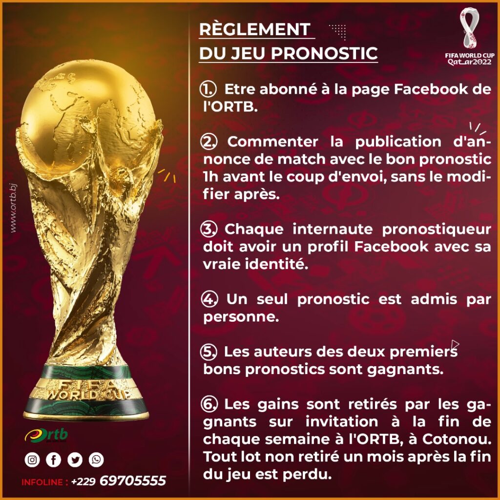 C’est un incontournable depuis quelques années sur les compétitions sportives. Cette fois encore, le jeu pronostic sur les rencontres diffusées par l’ORTB se passera sur notre page Facebook avant les matchs avec plein de cadeaux en jeu. A vous de jouer en vous conformant au règlement.